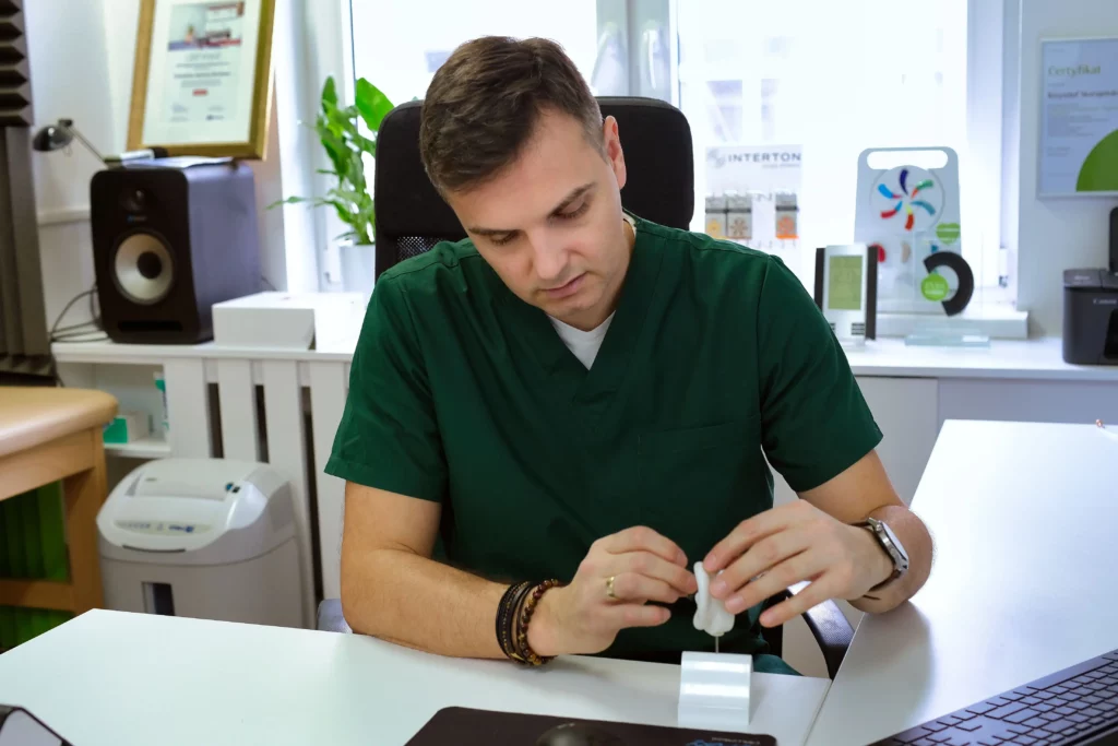 Aparaty słuchowe to zaawansowane urządzenia, które wymagają regularnej konserwacji i profesjonalnego serwisowania. W gabinecie Centerton zajmujemy się naprawą i serwisem aparatów słuchowych renomowanych producentów, takich jak: Audio Service, Signia, Bernafon, Interton, Oticon, Starkey, Phonak, ReSound. Oferujemy szybkie i skuteczne usługi serwisowe, aby Twój aparat działał niezawodnie każdego dnia.